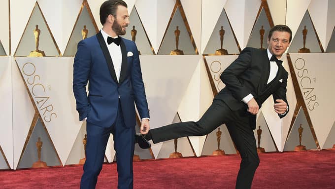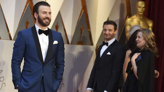 Chris Evans fühlt sich wohl auf dem roten Teppich - auch wenn "Avengers"-Kollege Jeremy Renner etwas skeptisch im Hintergrund guckt.