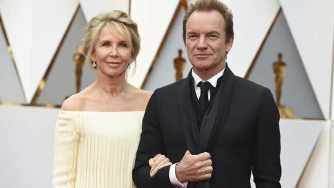 Sting und Ehefrau Trudie Styler. Auch Sting darf auf der Bühne seinen nominierten Song präsentieren.