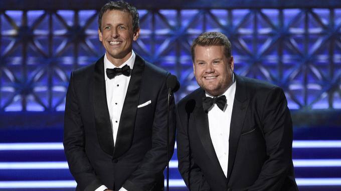 Die "Late Show"-Moderatoren Seth Meyers und James Corden übergaben den Award für den "Besten Nebendarsteller in einer Comedy-Serie".