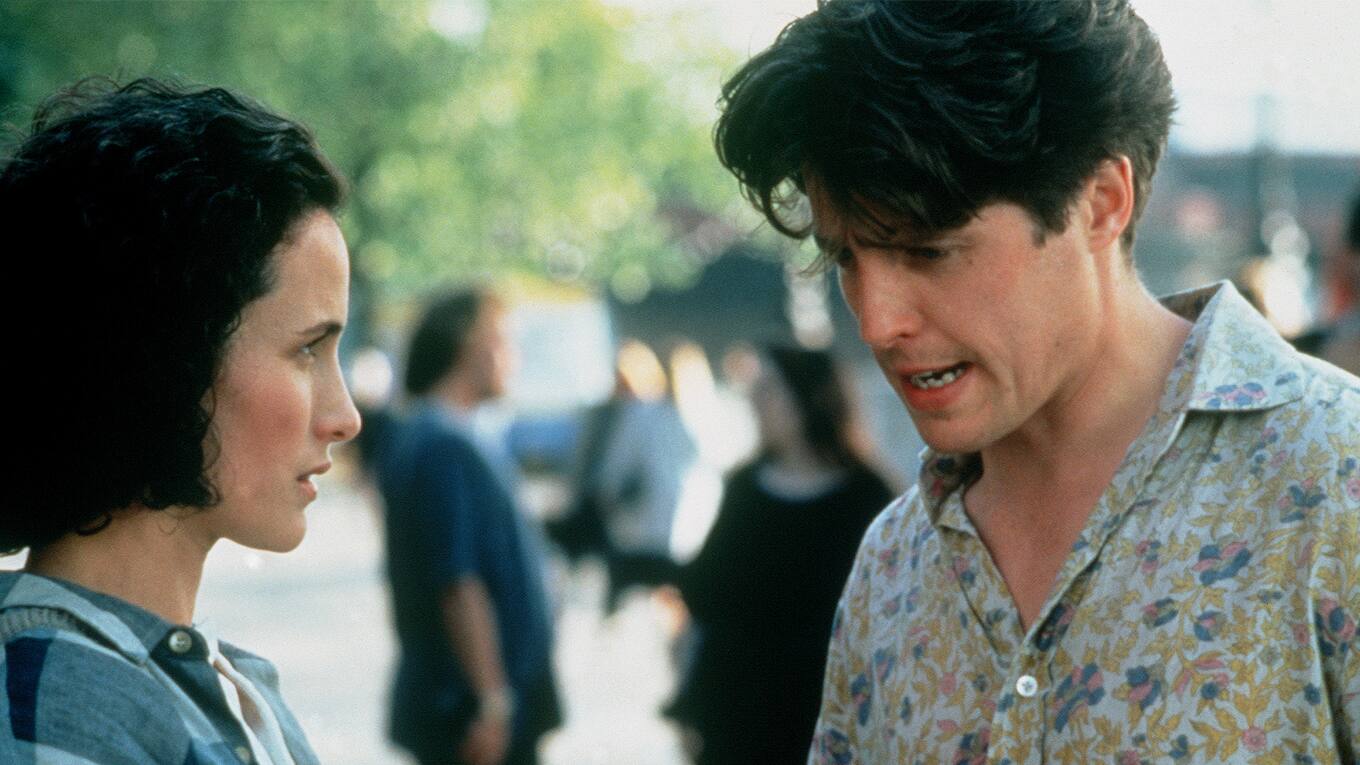 Hugh Grant und Andie MacDowell brauchen vier Hochzeiten und ein Begräbnis, um zu erkennen, dass sie füreinander bestimmt sind. Romantische Komödie mit sprühendem Witz und geschliffenen Dialogen - Lebenskünstler Charles (Hugh Grant) hat als Trauzeuge schon einige Hochzeiten seiner Freunde miterlebt. Nur er selbst denkt nicht ans Heiraten. Dann lernt er auf einer Feier die Amerikanerin Carrie (Andie MacDowell) kennen. Doch weil er sich nicht entscheiden kann, trennen sich ihre Wege zunächst. Bei der nächsten Hochzeit treffen sie wieder aufeinander.