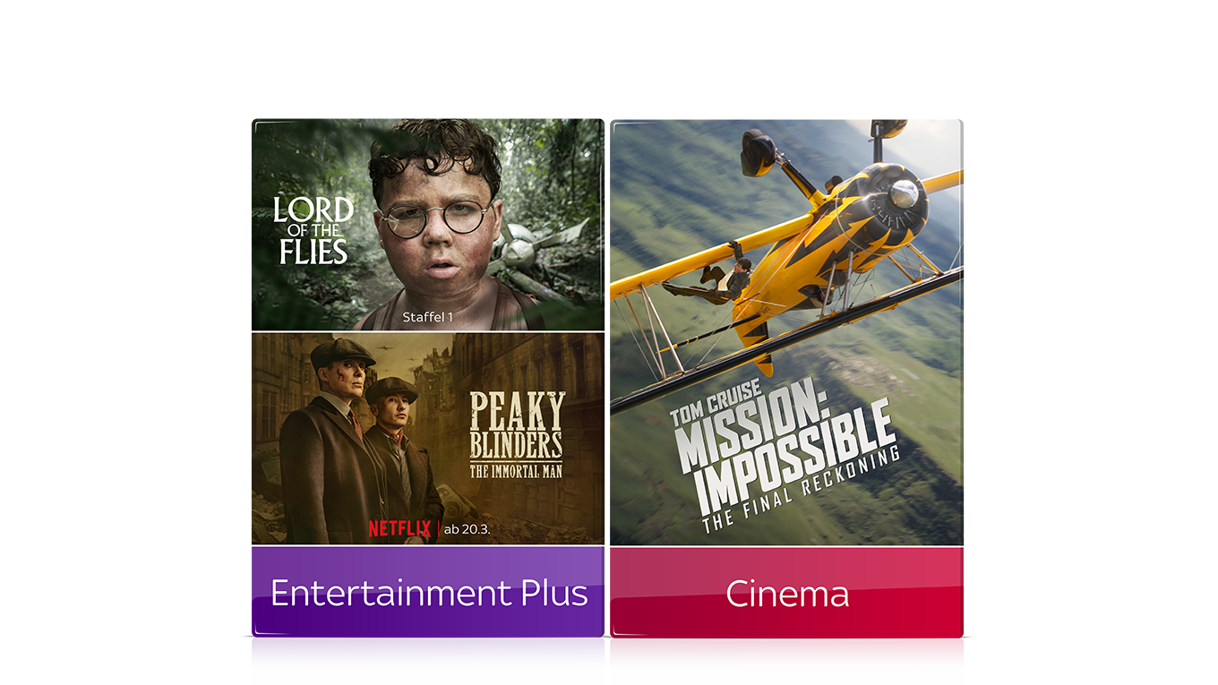 - 12-Monats-Abo aus einem von vier Paketen (Entertainment Plus, Entertainment Plus & Cinema, Sport oder Bundesliga) – flexibel und ohne Zusatzkosten über unseren Partner cadooz.