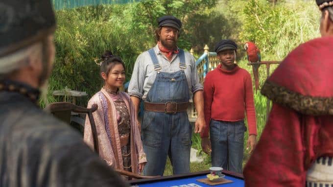 Nachdem Jim Knopf (Solomon Gordon) und Lokomotivführer Lukas (Henning Baum) die böse Frau Mahlzahn besiegt haben, verbringen sie eine gemtüliche Zeit mit Prinzessin Li Si (Leighanne Esperanzate) auf Lummerland.