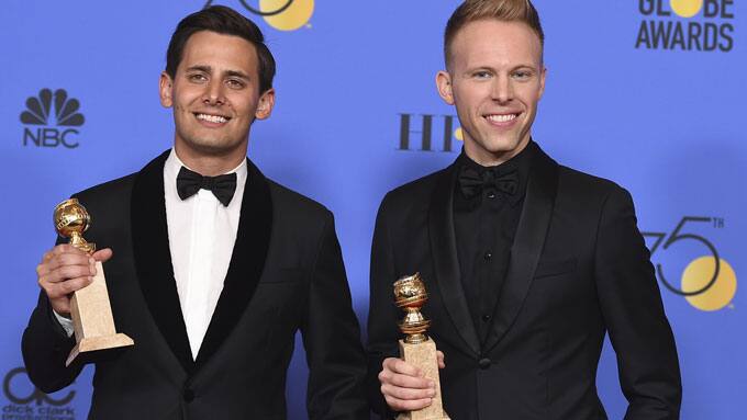 Für drei Awards nominiert, konnte das Musical "Greatest Showman" den "Besten Song" - "This is Me" abräumen. Benj Pasek und Justin Paul, die bereits für "La La Land" die Musik komponierten, nahmen den Globus entgegen.