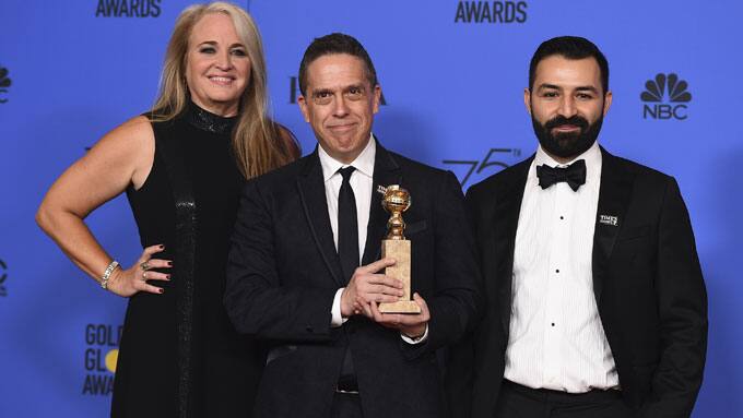 Das Team von "Coco" (Darla K. Anderson, Lee Unkrich und Adrian Molina) freute sich über den Golden Globe® für den "Besten Animationsfilm".