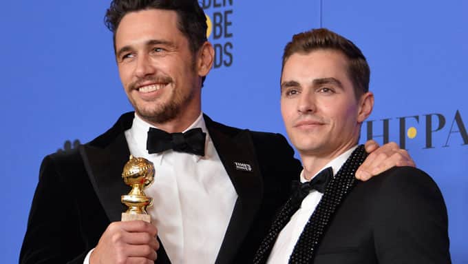 James Franco (l.) freute sich gemeinsam mit Schauspielkollege und Bruder Dave über seinen goldenen Globus als "Bester Schauspieler - Musical oder Komödie" für "The Disaster Artist".