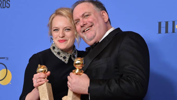 Schauspielerin Elisabeth Moss und Filmemacher Bruce Miller freuten sich über die Auszeichnungen als "Beste Schauspielerin - Serie" und "Beste Serie" für "The Handmaid's Tale".