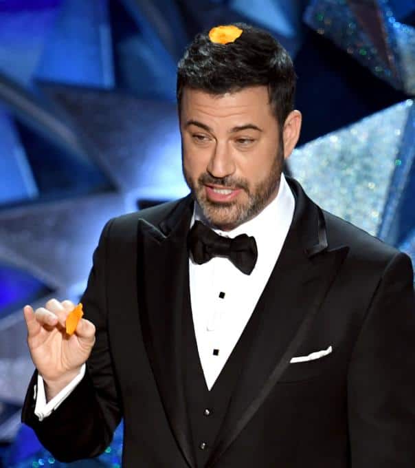 Und als Oscar-Moderator moderiert man auch mit Flitter auf dem Kopf.