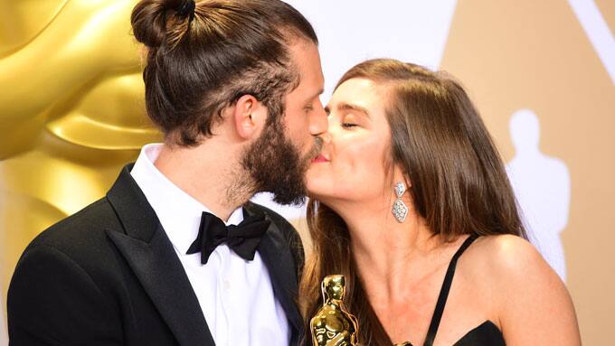 Feierten ihren Gewinn mit einem Kuss: Chris Overton und Rachel Shenton erhielten für "The Silent Child" den Award in der Kategorie "Bester Kurzfilm".