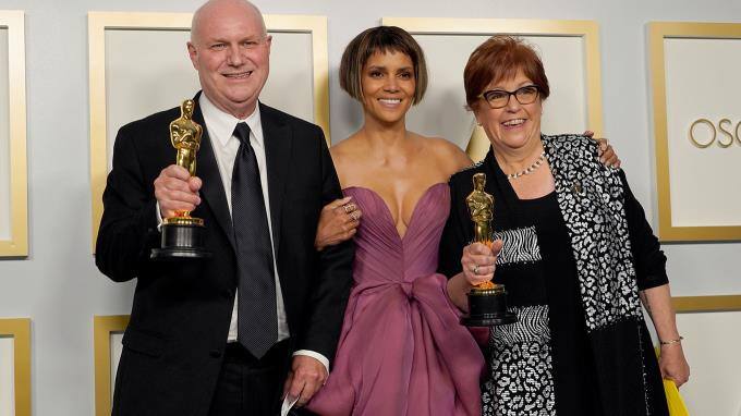 "Bestes Szenenbild": Donald Graham und Jan Pascale (r.) für "Mank" - mit Laudatorin Halle Berry
