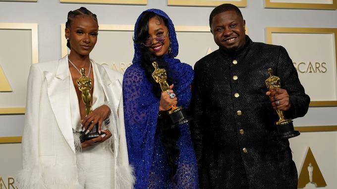 "Bester Filmsong": (v.l.n.r.) Tiara Thomas, H.E.R. und Dernst Emile II für "Fight for You" aus "Judas and the Black Messiah"