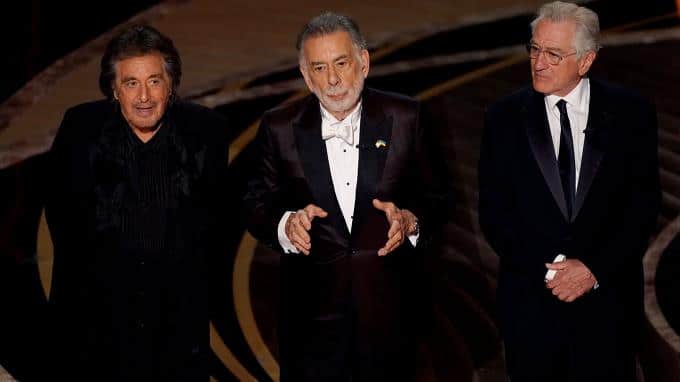 Immer wieder wurde dieses Jahr großen Kultfilmen Tribut gezollt. So auch "Der Pate" und Al Pacino, Francis Ford Coppola und Robert De Niro (v.l.n.r.) ließen sich diesen Moment nicht nehemn.