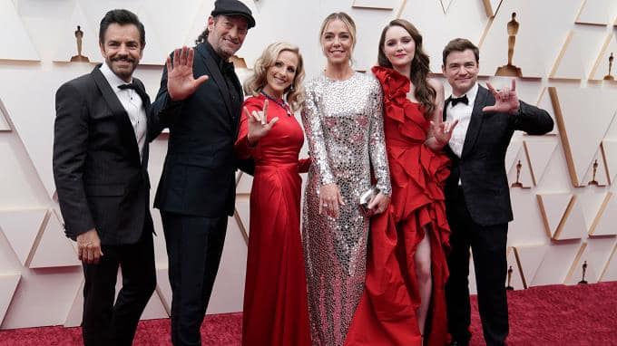 Das Team von "Coda": Eugenio Derbez, Troy Kotsur, Marlee Matlin, Sian Heder, Emilia Jones und Daniel Durant (v.l.n.r.)