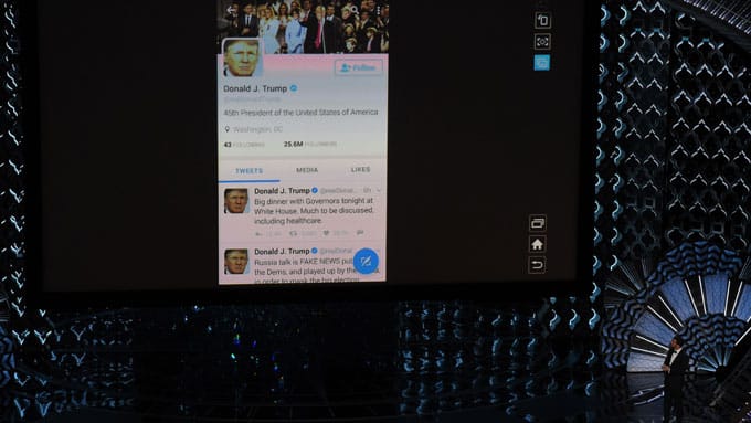 Dann kam Gastgeber Jimmy Kimmel, der wie erwartet, gleich auf die derzeitige Situation in den USA und auf Präsident Donald Trump einging. "Ich möchte mich bei Präsident Trump bedanken. Erinnert ihr euch noch an letztes Jahr, als jeder gesagt hat, dass die Oscars® rassistisch seien?"