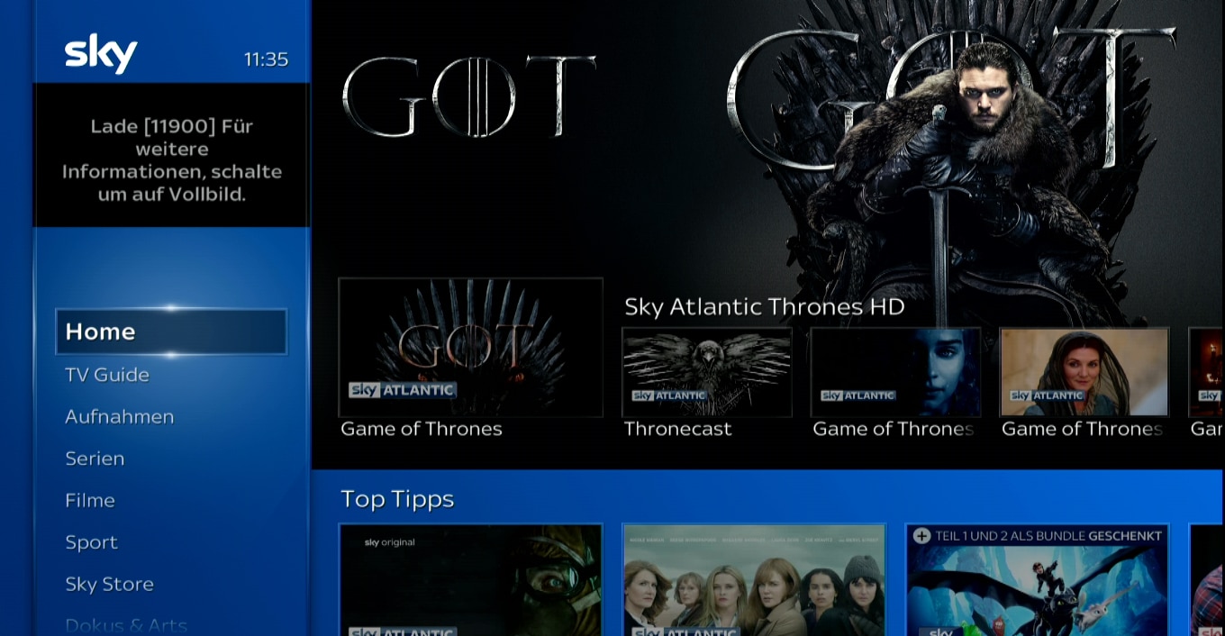 Um Inhalte aus dem Sky Store streamen zu können, ist eine aktive Internetverbindung aus Deutschland oder Österreich erforderlich.