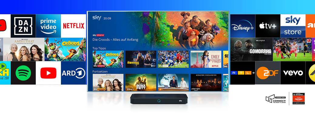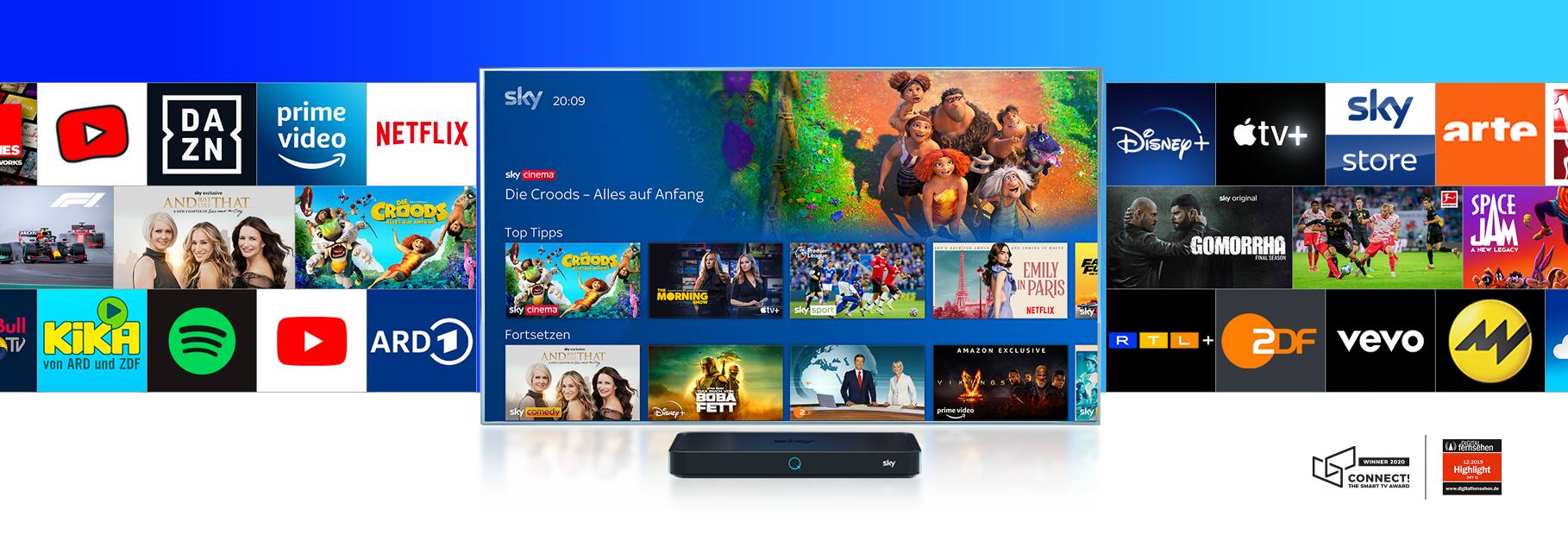 *UHD: Für den Empfang der UHD-Kanäle ist ein Sky Q Receiver sowie ein UHD-fähiges Endgerät (z.B. Fernseher) erforderlich. Welche UHD-Sender enthalten sind, richtet sich nach den gewählten Programmpaketen und der Verfügbarkeit beim jeweiligen Netzbetreiber. Weitere Informationen unter sky.de/senderempfang. Vereinzelt sind aus lizenzrechtlichen Gründen bestimmte Inhalte nicht in UHD verfügbar. Mehr Info unter sky.de/uhd. Über die Sky Q IPTV Box und Sky Q-Mini sind UHD-Inhalte nicht verfügbar. Restart: Voraussetzung ist die Verfügbarkeit als Titel auf Abruf. Aufnahmen von unterwegs: Voraussetzung ist, dass der Sky Q Receiver und die Sky Go App mit dem Internet verbunden sind. Streamen von Aufnahmen: Voraussetzung ist, dass sich der Sky Q Receiver und die Sky Go App im gleichen Heimnetzwerk befinden und mit dem Internet verbunden sind. Apps/Mediatheken: Nicht enthalten ist die Nutzung von kostenpflichtigen Apps/Mediatheken wie z. B. Prime Video, Netflix , DAZN etc. Hierfür ist ein separates Abonnement des jeweiligen Anbieters nötig. Sprachsteuerung: Voraussetzung ist, dass der Sky Q Receiver mit dem Internet verbunden ist. Für die Internetverbindung anfallende Kosten sind kein Bestandteil des Abonnements. Sky Q IPTV Box: Die Sky Q IPTV Box wird leihweise für die Dauer des Sky Abonnements zur Verfügung gestellt. Mit der Sky Q IPTV Box können einzelne Inhalte des Sky Abonnements über das Internet auf einem TV-Gerät mit HDMI-Anschluss empfangen werden. Voraussetzung ist ein Sky Abonnement inkl. Sky Q sowie eine stabile Internetverbindung. Empfohlene Bandbreite mindestens 3,5 Mbit/s für SD-Qualität, 6 Mbit/s für HD-Qualität. Für die Internetverbindung anfallende Kosten sind kein Bestandteil des Sky Abonnements. UHD-Inhalte sind über die Sky Q IPTV Box nicht verfügbar.