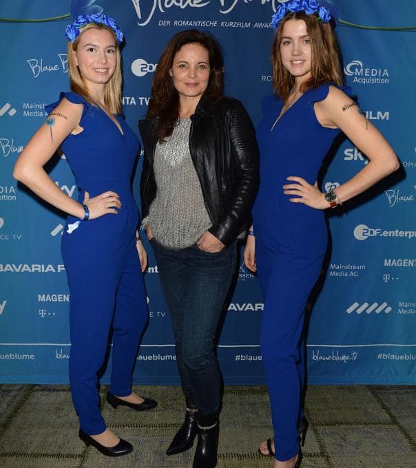 Schauspielerin und Sängerin Birte Hanusrichter (l.) eröffnete die Verleihung und hielt auch die Laudatio für die "Beste Schauspielerin" Kristin Suckow (m.). Mit Regisseurin Eileen Byrne (r.) und Dr. Christian Franckenstein (CEO Bavaria).