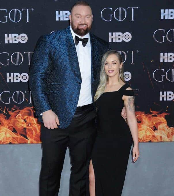 Nachdem sich Björnsson von Pascal befreien konnte, posierte der ehemalige Basketballstar doch lieber mit seiner Ehefrau Kelsey Henson.