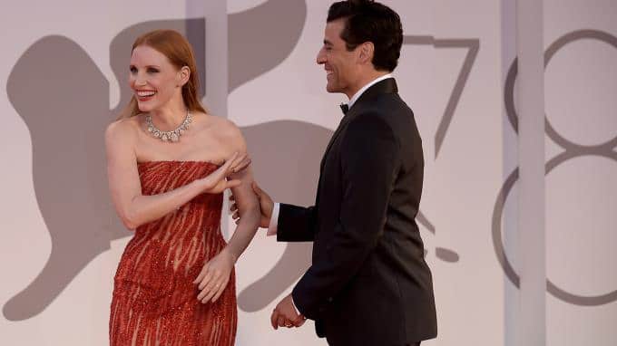 Jessica Chastain und Oscar Isaac stellten die neue HBO-Miniserie "Scenes from a Marriage" bei den 78. Filmfestspielen in Venedig vor.