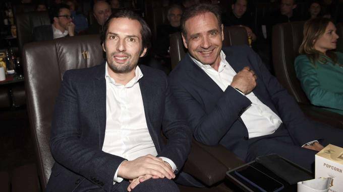 "Der Pass"-Produzent Quirin Berg mit Carsten Schmidt, CEO von Sky Deutschland.