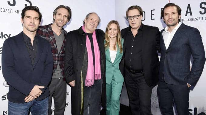 "Der Pass"-Schauspieler Julia Jentsch und Nicholas Ofczarek mit Musik-Produzent und Oscar-Preisträger Hans Zimmer.
