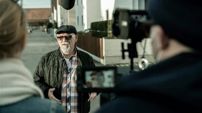 Oliver Reiser, ein Nachbar aus Gersthofen, spricht mit dem Filmteam über den Fall: "Die ganze Stadt stand unter Schock."