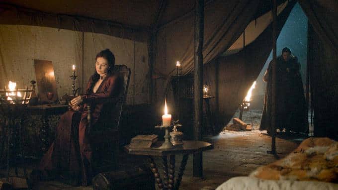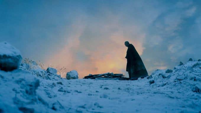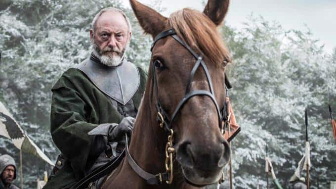 Währenddessen macht Davos einen Spaziergang, um seine Gedanken zu sortieren. Er erreicht die Stelle, an der Shireen, die Tochter von Stannis Baratheon, auf dem Scheiterhaufen von Melisandre (Carice von Houten) im Namen des Lichtgottes verbrannt wurde. In der Asche findet er den Hirsch, den er für seine kleine Freundin damals geschnitzt hatte und erkennt die grausame Wahrheit über Shireens Tod.