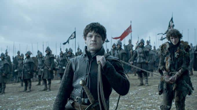 Auf einem freien Feld vor Winterfell treffen sich Ramsay Bolton (Iwan Rheon) und sein Widersacher Jon Schnee (Kit Harington) zum ersten Mal. Mit dabei sind auch Sansa Stark (Sophie Turner) sowie Davos Seewert (Liam Cunningham).