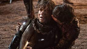6. Staffel, Folge 8: Sandor Clegane nimmt Rache. Cersei lehnt sich gegen den "Hohen Spatz" auf. Brienne von Tarth trifft Jamie Lannister vor der belagerten Festung Schnellwasser. Und Arya kämpft um ihr Leben.