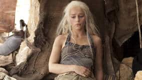 1. Staffel, Folge 9: Um Khal Drogo (Jason Momoa) vor dem Tod zu bewahren, greift Daenerys (Emilia Clarke) zu einem verbotenen Zauber. Indessen rücken die Armeen der Starks und der Lannisters gegeneinander vor.