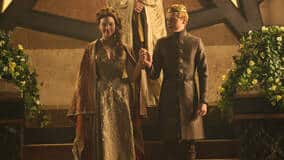 3. Staffel, Folge 8: Tyrion Lannister und Sansa Stark heiraten, um das Bündnis ihrer Familien zu besiegeln. Daenerys Targaryen bereitet sich unterdessen auf ihren Krieg gegen Yunkai vor.