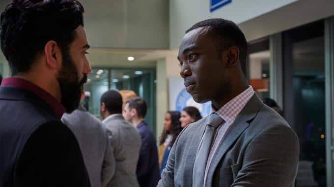 Jevan (Ray Panthaki) sichert Alex (Paapa Essiedu) seine Loyalität und Unterstützung zu.