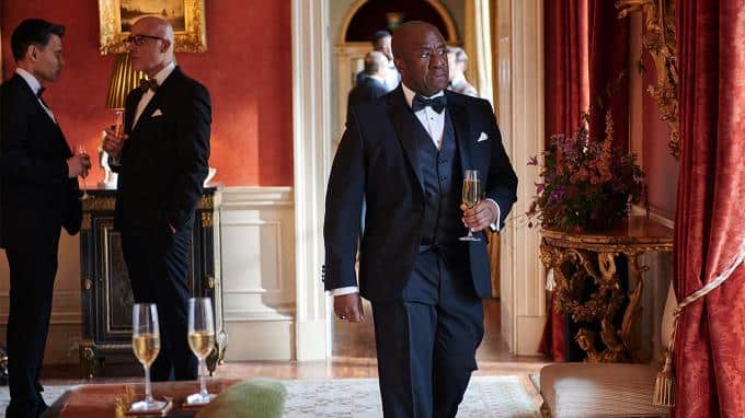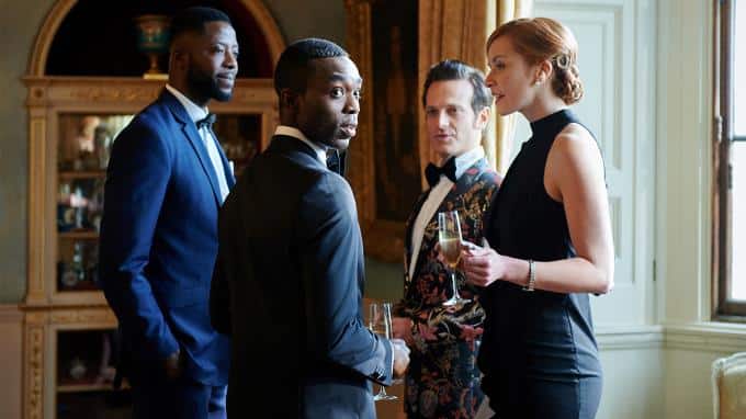 ... dessen Vater Ed (Lucian Msamati) zu einem Bankett eingeladen, wo er ihnen Finns neue Geschäftspartner vorstellen will.