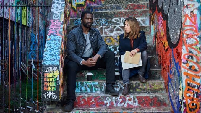 Undercover-Ermittler Elliot Finch (Sope Dirisu) trifft sich heimlich mit seiner Kollegin Vicky Chung (Jing Lusi), um ihr Bericht über die jüngsten Ereignisse zu erstatten.