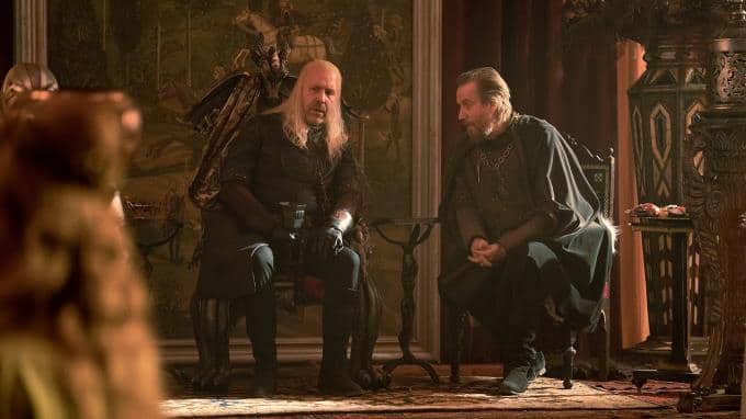 Rund drei Jahre sind vergangen: König Viserys Targaryen (Paddy Considine) hat mit seiner zweiten Ehefrau Alicent Hohenturm einen Sohn namens Aegon bekommen.