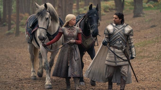 Rhaenyra ist nach dem Streit verärgert in den königlichen Wald geritten. Kriston Kraut (Fabien Frankel), der Ritter der Königsgarde, begleitet sie zu ihrem Schutz.