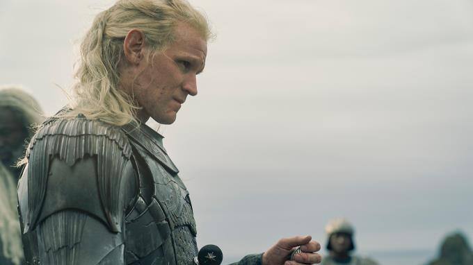 Prinz Daemon Targaryen (Matt Smith) erhält in dieser Situation die Botschaft von seinem Bruder. Der König sichert ihm seine Unterstützung im Krieg zu. Die Nachricht macht Daemon wütend.