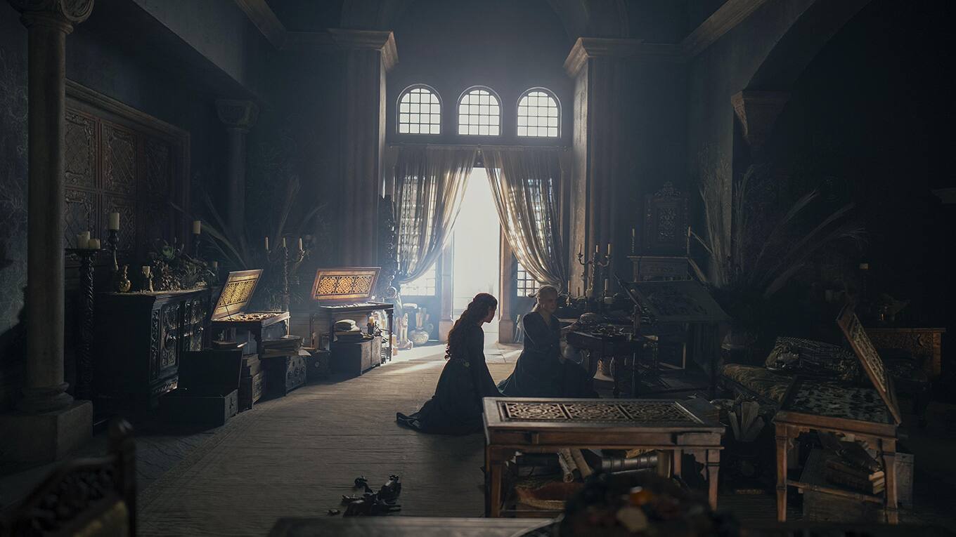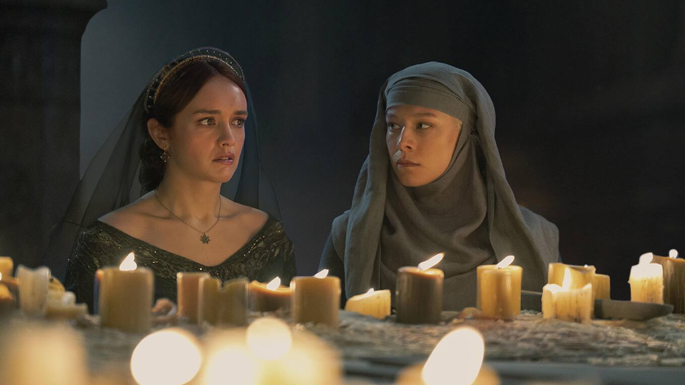 Rhaenyra hat einen Entschluss gefasst: Sie will mit Alicent persönlich sprechen. Sie hat sich von Mysaria beraten lassen und gelangt schließlich in einem Fischerboot und als geistliche Septa verkleidet unbemerkt in die Große Septe von Königsmund. Dort findet sie Alicent allein vor und gibt sich ihr zu erkennen. Alicent reagiert geschockt, ist aber für ein Gespräch mit ihrer Feindin bereit. Rhaenrya erklärt ihr, dass sie gekommen sei, damit sie einen gemeinsamen Weg für den Frieden finden können.