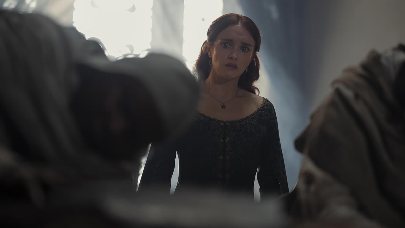 In der Ratssitzung von Team Grün veranlasst Alicent, dass ein neuer Regent ernannt wird, da König Aegon nicht mehr regieren kann. Aufgrund ihrer Erfahrung will sie den verantwortungsvollen Posten selbst übernehmen. Die Ratsmitglieder wollen aber keine Frau als Herrscherin, sondern wählen Prinz Aemond als neuen Regenten. Sogar Lord Larys Kraft (Matthew Needham) und Kriston fallen Alicent in den Rücken. Aemond hat seinen Willen bekommen und schreitet sofort in überheblicher Manier zur Tat. In Alicent brodelt es vor Wut. Sie fühlt sich betrogen und gedemütigt. Als sie mitanhören muss, dass Aemond den hungernden Untergebenen verbieten will, aus Königsmund zu fliehen, ist sie außer sich. Sie weiß, dass er weitere impulsive Fehlentscheidungen treffen wird.