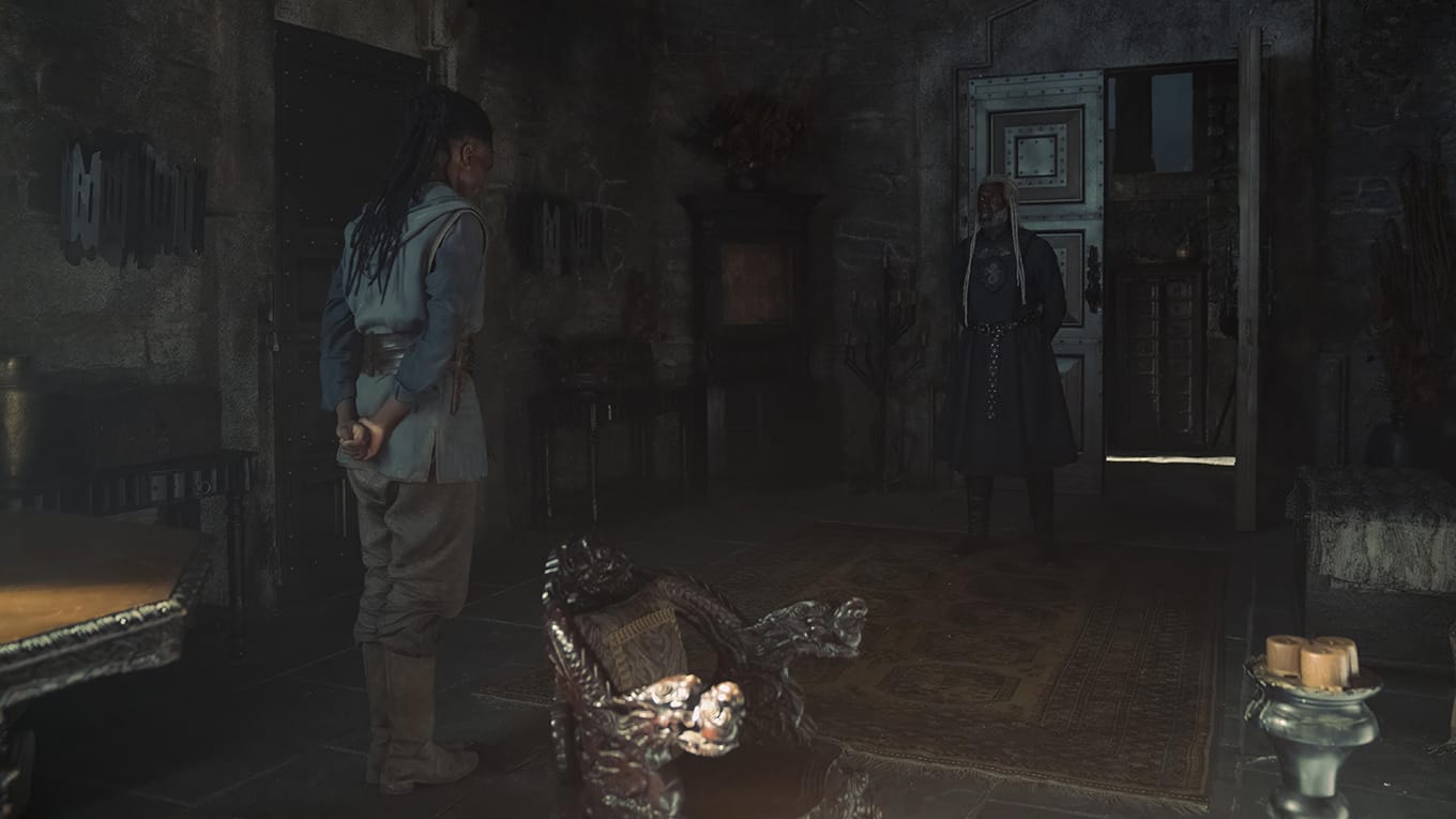 Regisseur Loni Peristere, Produktionsdesigner Jim Clay und VFX-Produzent Thomas Horton erläutern die Entstehung des Götterhains in Harrenhal, die intensive Stuntarbeit bei Vermithors Angriff und die visuellen Effekte beim Drachenreiten.