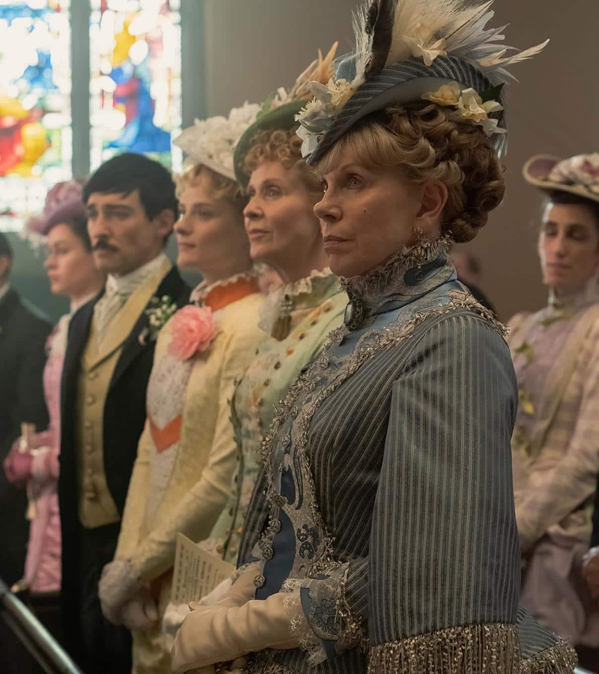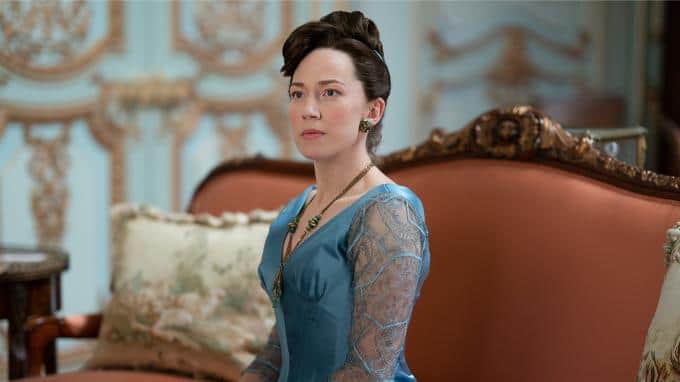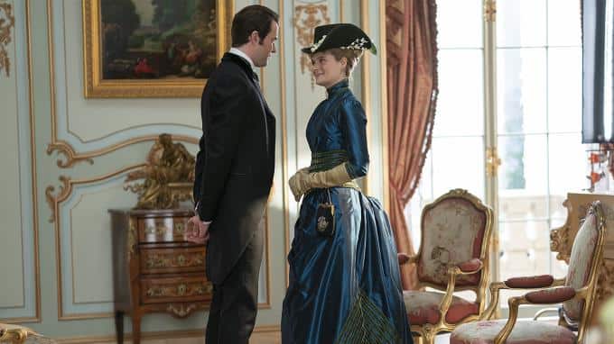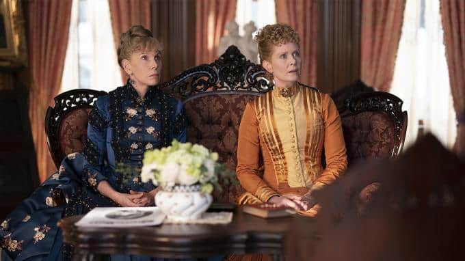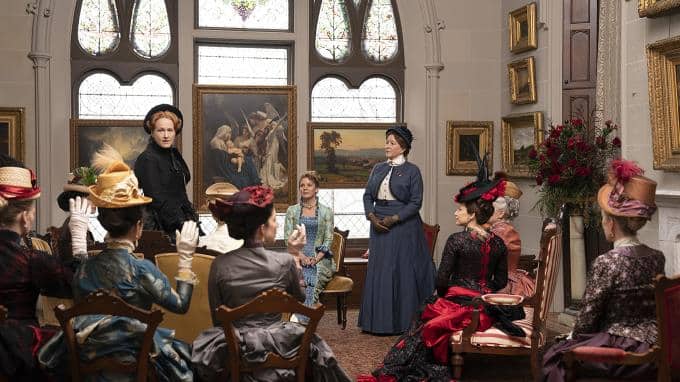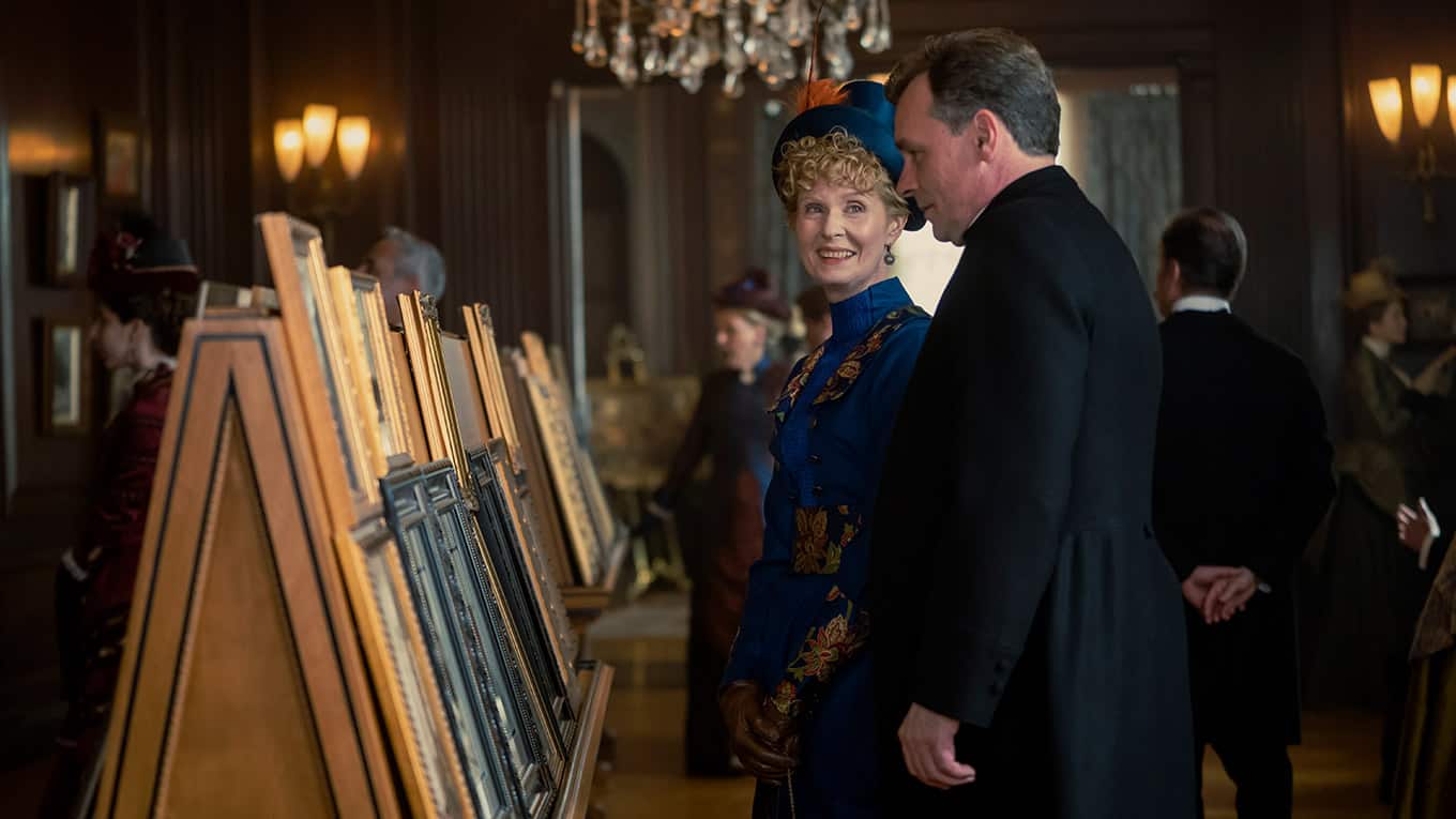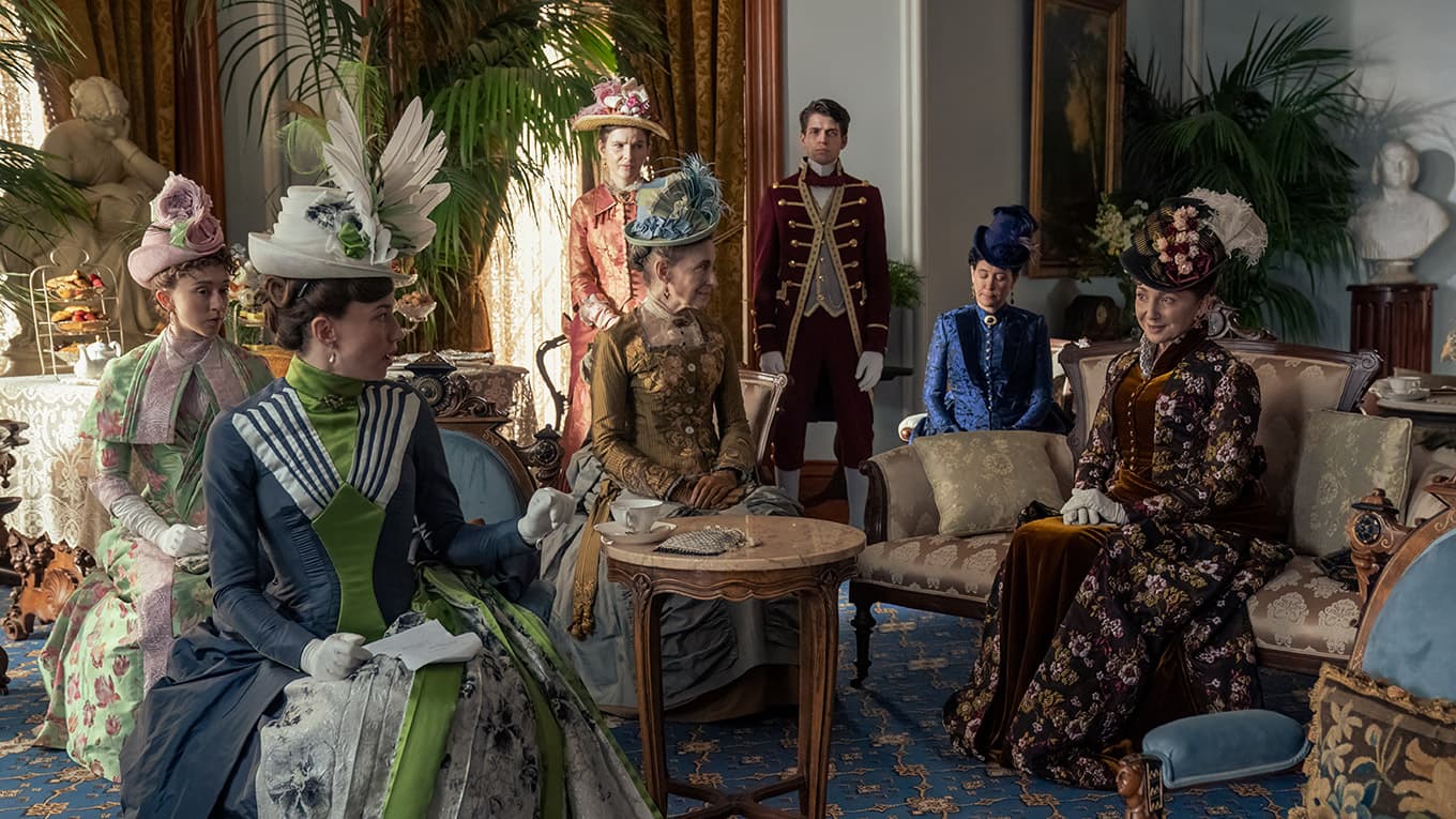 Die zweite Staffel der HBO-Serie spielt 1883 im sogenannten "Vergoldeten Zeitalter" in New York. Mrs. Astor (Donna Murphy, auf dem Sofa rechts) spielt eine bedeutende Rolle in der New Yorker Gesellschaft und entscheide, wer in die High Society aufgenommen wird.