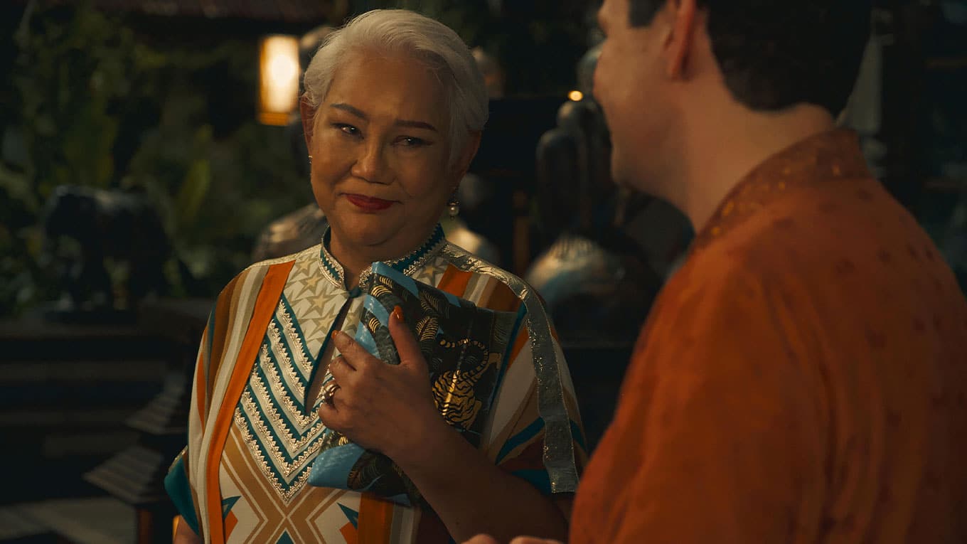 Kein anderer Ort der Welt wäre passender für ein "The White Lotus"-Luxusresort: Hotel-Manager Fabian (M., Christian Friedel) begrüßt neue Gäste in Thailand.