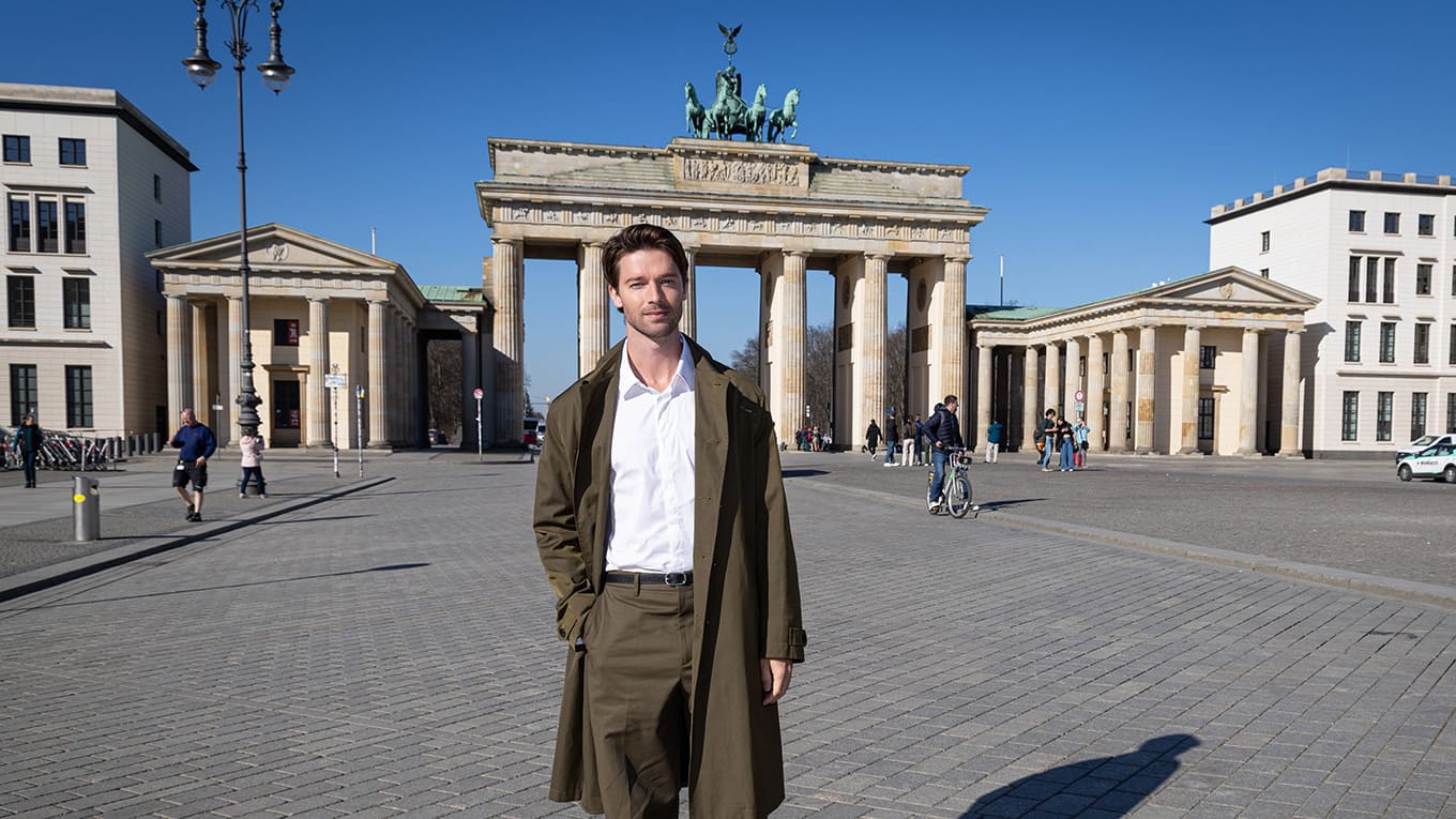 Patrick Schwarzenegger zu Besuch in Berlin: Sky hat den US-Schauspieler für den Pressetag zur dritten Staffel der HBO-Serie "The White Lotus" am 20. März 2025 in die deutsche Hauptstadt eingeladen.