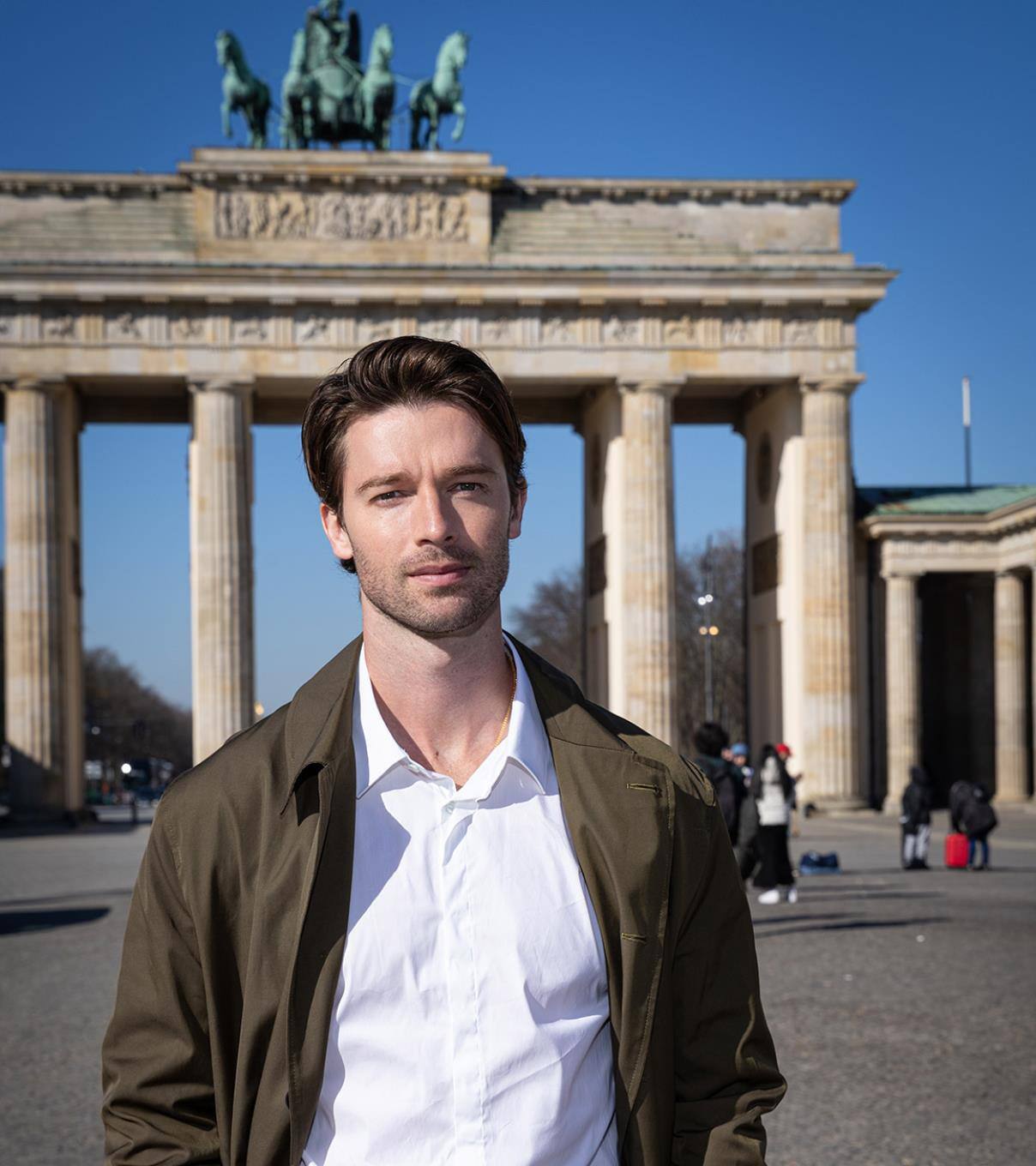Bei seinem Berlinbesuch konnte Patrick Schwarzenegger etwas Sonne am Brandenburger Tor genießen.