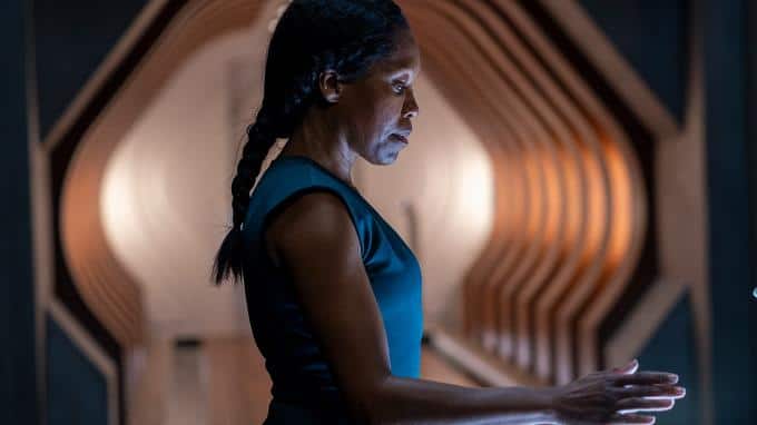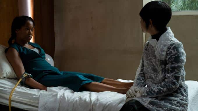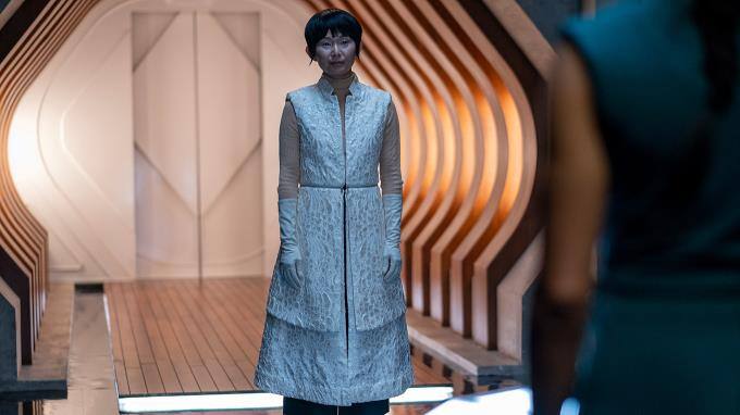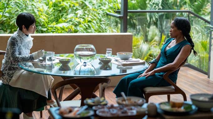 Lady Trieu (Hong Chau) fragt Angela (Regina King) beim Essen über ihren Mann Cal aus. Sie findet es merkwürdig, dass dieser nach enem Unfall eine totale Amnesie hatte und seine Erinnerungen bis heute nicht zurückgekehrt sind. Angela weicht ihr aus und erkundigt sich nach Bian, die gar nicht Trieus Tochter, sondern deren geklonte Mutter ist.