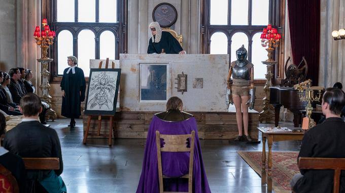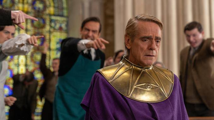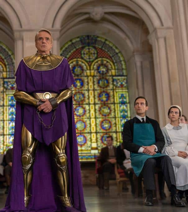 Adrian Veidt alias Ozymandias (Jeremy Irons) muss sich vor den Klonen und dem Aufseher, der als Richter fungiert, für seine Taten verantworten.