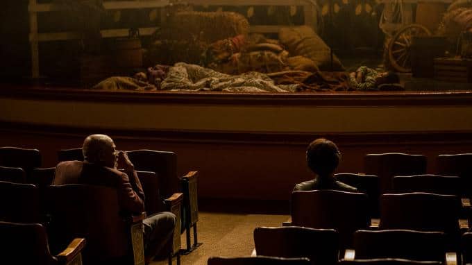 Angela Abar (Regina King) konnte sich ins nahegelegene Theater retten, wo ihr Großvater Will Reeves (Louis Gossett Jr.) bereits mit ihren Kindern wartet. Das Theater war einst das Kino, in dem Wills Mutter Klavier spielte.