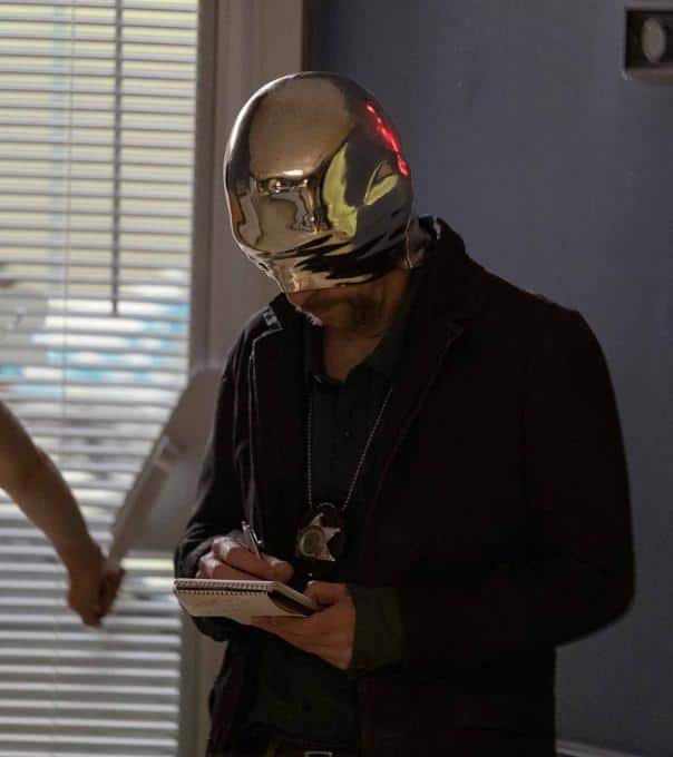 Abar erhält einen Anruf, sie soll unmaskiert zur großen Eiche kommen. Dort findet sie den alten Will Reeves (Louis Gossett Jr.), der ein Blatt Papier mit den Worten "Pass auf den Jungen auf" in der Hand hält und auf den Baum deutet. Ein Mann wurde dort erhängt: Polizeichef Judd Crawford. Ein einzelner Tropfen Blut fällt auf seine Marke, die unter ihm liegt. Eine Hommage an das ikonische Logo der Comics.
