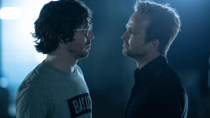 Caleb (Aaron Paul) nimmt seine Umgebung aufgrund der Droge verzerrt wahr und hört in seinem Kopf ständig wechselnde Musik.