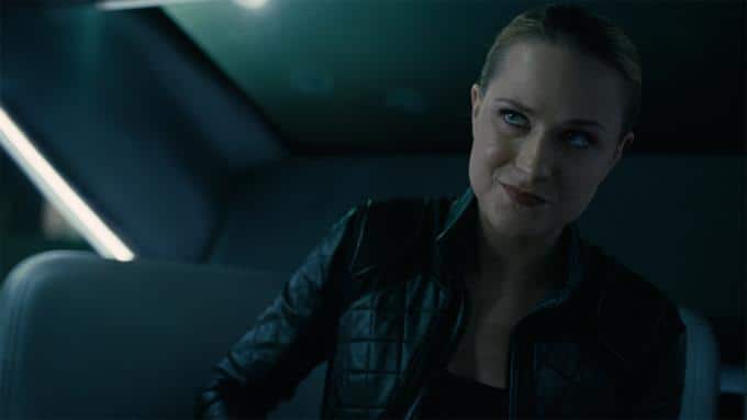 Dolores (Evan Rachel Wood) , Caleb und Liam fliehen in einem Wagen vor Seracs Leuten, die sie verfolgen und töten wollen. Sie kann Liam außerdem überzeugen, ihr seinen Sicherheitsschlüssel für das System zu geben. Sie hackt sich ein und sucht nach den Daten von Serac.