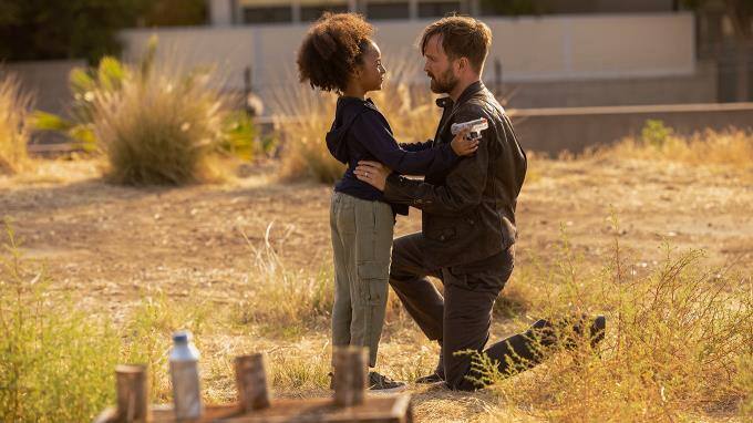 Caleb (Aaron Paul) hat sich in den vergangenen Jahren ein neues Leben aufgebaut: Er hat eine Ehefrau und eine siebenjährige Tochter namens Frankie (Celeste Clark).